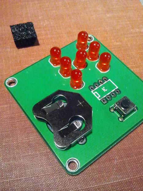 Material, s para mini led dadosHerramientas1 soldador2 alambre de soldadura3 cortador del tablero veroPiezas que necesita1. 8 pines toma ic2. 7 led, s3. pic12f629a4. 10 k ohmios (1)5. altavoz6. batería de lipo 3,7 voltios7. vero board8. los cables9.