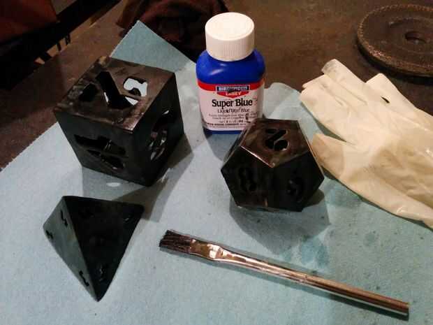 Después de aplicar el azulado limpia las piezas con un cepillo de alambre y aclarar apagado. Esto fue seguido por pulido con una esponja de fregar y luego una capa de barniz transparente.