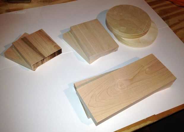 (1) madera --no empiezo con un diseño de caja particular en mente. Primero encontró trozos de madera conveniente para el proyecto, y diseñado en torno a ellos. Las cajas son dos piezas que forman cada lado de la caja de dados, por lo que estaba buscando piezas que fueron al menos 3/4" de espesor. He encontrado bastantes pedazos de desecho para hacer las 4 cajas se muestra aquí, una buena gama de tamaños y formas para jugar con.