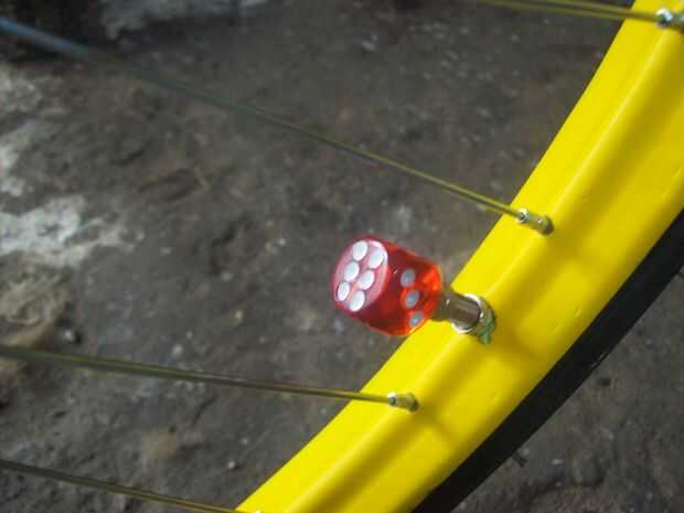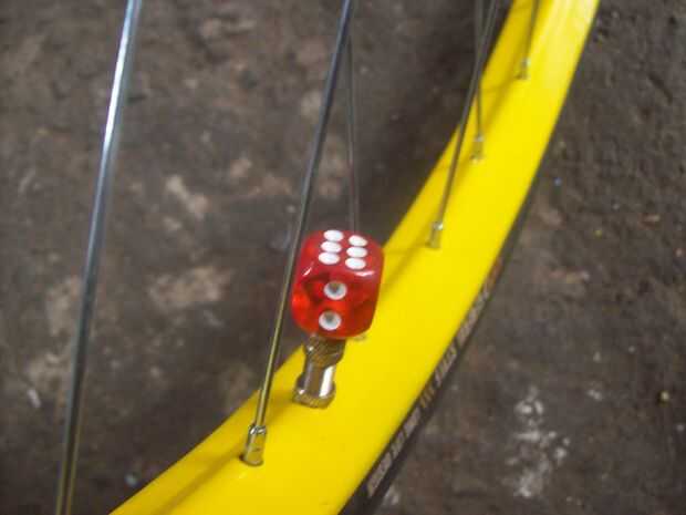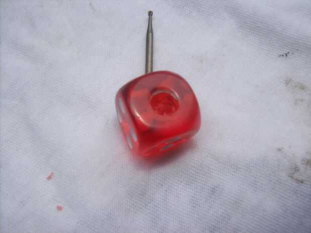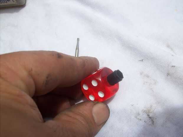 Con la ayuda de la dremel, hacer un agujero en el centro de los dados. Pegar dentro del agujero de la tapa de la válvula. Y lo instalamos.