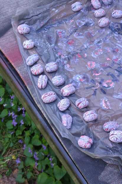 Es la idea como el lavado de pintura. Mezcle el pegamento blanco con agua, sobre una mezcla 1:1. Que se seque fuera en el sol y viento y se irá mucho más rápido. No tengo ningún papel de cera para ponerlos usé una bolsa de compras.