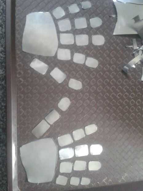 con calce de metal corte mano placa formas y pegamento caliente en la posición...