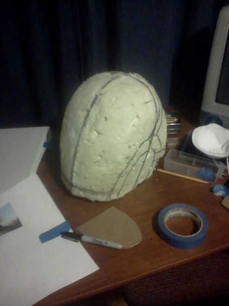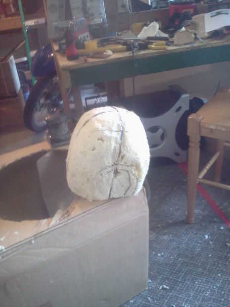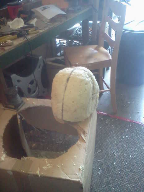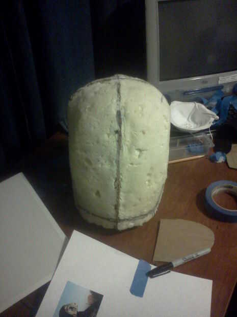 Primer paso obviamente es conseguir dimensiones de su cabeza. No vas para obtener anywear si sólo vas por adivinar, a pesar de que estoy haciendo sobre el lijado final y la arcilla, que necesita para adaptarse a todos los componentes electrónicos, también. Puse mi dimensiones sobre un trozo de cartón y maltratados a la forma de imágenes en línea. Luego até ellos juntos en un perfil y vista frontal y trasera, haciendo 4 cuadrantes. Luego vino la espuma en aerosol. Esto era complicado teniendo en cuenta que no podría ser burbujas de aire, y si existiera, sería difíciles puntos a rellenar con la arcilla. de todos modos, una vez seca la espuma había cortado al nivel de cartón y comenzó a alisar con un cuchillo de cocina básica. Asegúrese de que su que su no tiene miedo de arruinar, porque no sé si vivirá o no después de esto. Una última sugerencia, hacer muy áspera, porque si no, podría acabar demasiado en y causar la forma ser deformido. Y si el pensar que esto toma tiempo, esperar a que el siguiente paso: arcilla