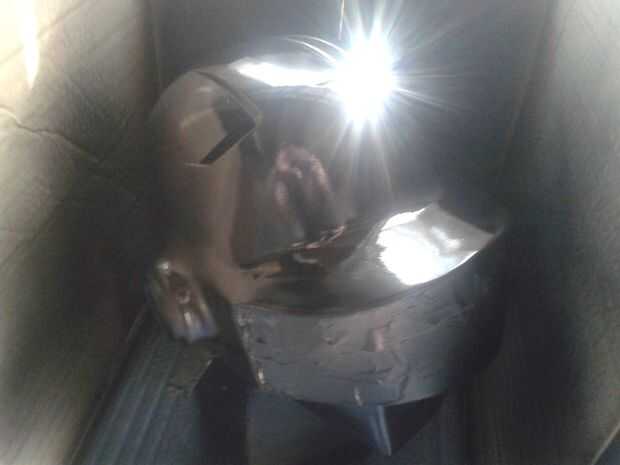 aplicar una capa uniforme del spray cromo plasticoat uniformemente cada 20 min hasta efecto deseado...Paso 1: con calce de metal corte mano placa formas y pegamento caliente en la posición...Paso 2:admirar el casco :)para una mirada más detallada en