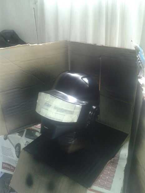 paso 1 - casco de encontrar. casco de bateo de beisball fue bastante igualadoPaso 2 - utilizar dos latas de Red bull para secciones de oído (otras marcas no están suficientemente ancha como). Corte hacia abajo y utilice sólo las secciones de abajo.Pa