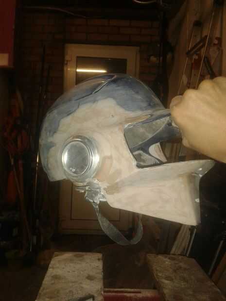 con una sierra de calar con cuidado corta la parte trasera del casco para obtener la forma correcta...