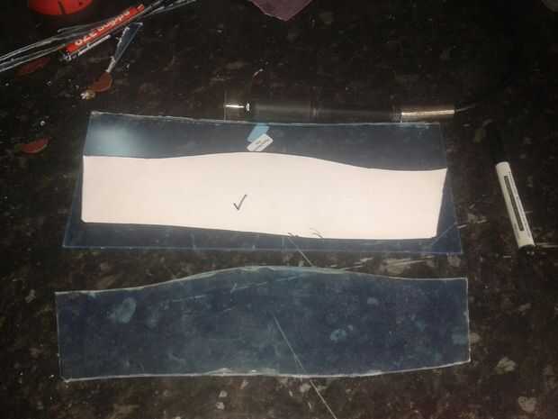 con tarjeta Coloque sobre la parte delantera del casco y marque desde dentro el perfil de lo que cortó la visera. una vez usted tiene el derecho de forma corte utilizando un disco de corte en una herramienta dremel...