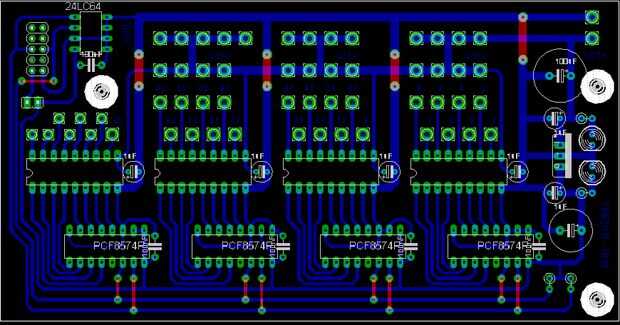 La réplica original de daft punk tabla instructable no incluye el programa de un microcontrolador o un circuito para la Junta de expansión de salida. De la descripción (y busca en este blog) podemos decir que utiliza unos expansores de puertos I2C IO conectados a un transistor.