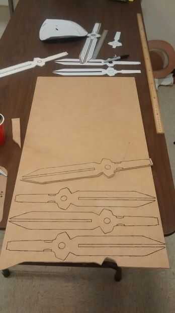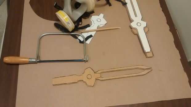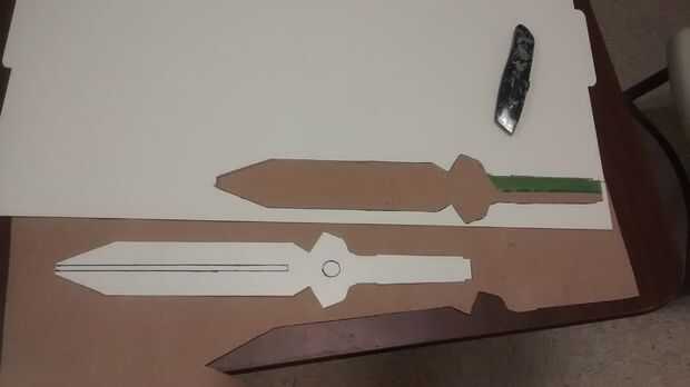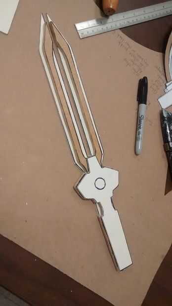 Comencé cortando a múltiplos de todas las capas. Estoy usando un método que algunos fabricantes de apoyo como para llamar "bocadillo" que sólo se está acumulando el apoyo de diferentes espesores de material. Esto es donde tener imprimir pocos ejemplares del modelo viene muy bien. Empecé con una capa de centro de estireno que tiene la forma de daga completo. Entonces yo cortar capas MDF sin el bisel de la cuchilla o el cortes de mango pequeño. Luego corté una capa final de estireno para algún detalle de relieve en el mango. Se puede ver cada capa diferente en las fotos. El MDF todo consiguió recortar con una sierra de marquetería. El plástico que recortar con una cuchilla retráctil. En los dos últimos cuadros en este paso se puede ver cómo todas las capas apilar juntos.