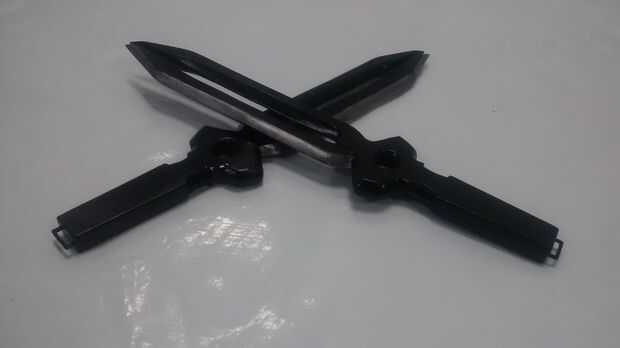 Hubo algunos limpiar que debían hacerse alrededor de los bordes de la cinta; un pequeña área que tira para arriba hacia la base de la hoja, así como filtración un poco debajo del borde de la cinta en uno o dos lugares. En lugar de intentar pintar sobre él, que podría hacer que el acabado metálico ver manchas, decidí secar cepillo algunos pintura negra en darle alguna erosión y hacerla más realista buscando. Después de que se había secado me lo dio una pareja capas de capa clara brillante y deje secar.
