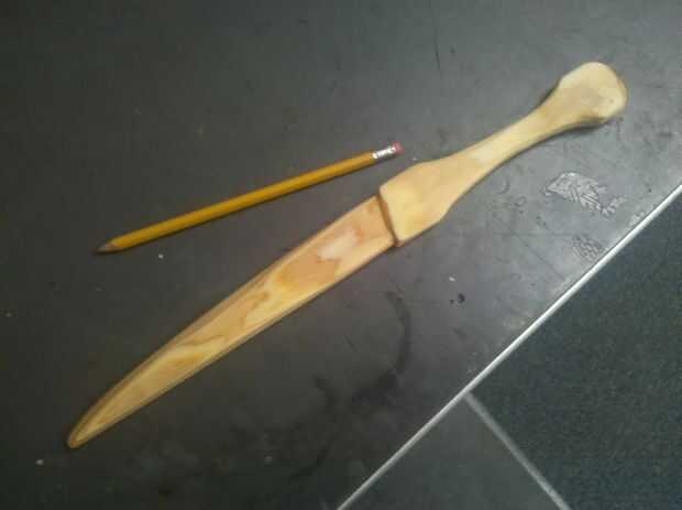 Una vez que estés cómodo con la apariencia de tu daga agarrar un papel de lija y empezar a lijar. La mejor manera es conseguir diferentes tipos de papel de lija, arrancar con el grano más bajo (la más áspera) y el trabajo con los más altos (más suave). El papel de lija que tenía era de 60, 100 y 150. Repasar todo lo mejor posible con cada grano antes de pasar a la siguiente.