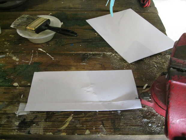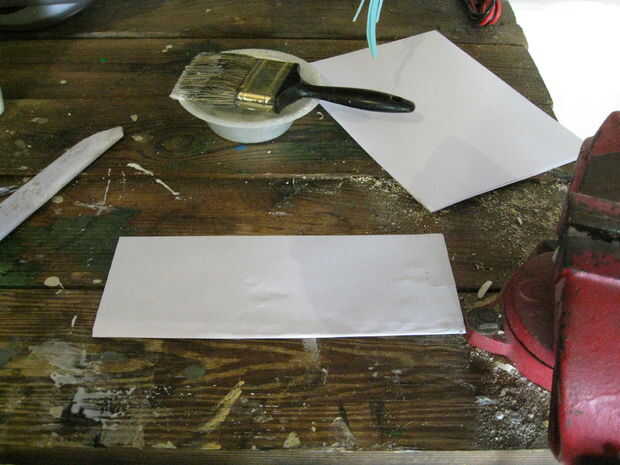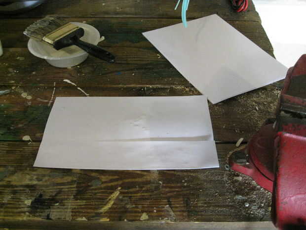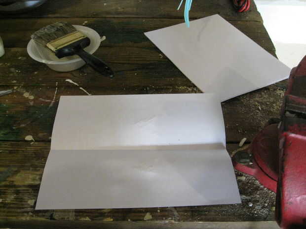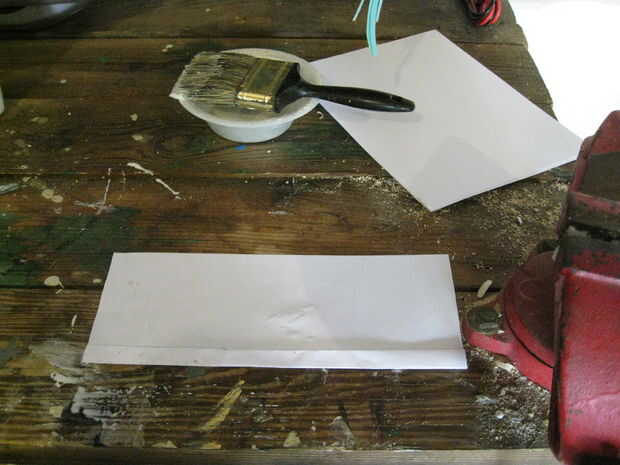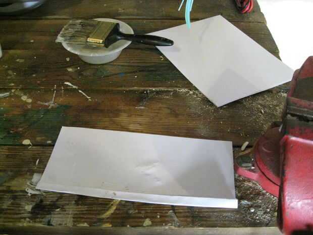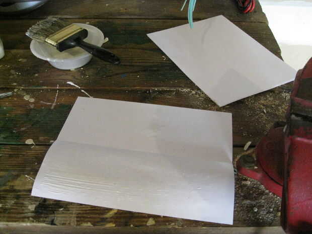 Apenas como con la cuchilla cuando se aplica el pegamento para la manija se aplica uniformemente y no aplicas demasiado o demasiado poco. Con esto dicho aplicar pegamento a una hoja de papel y doblar por la mitad