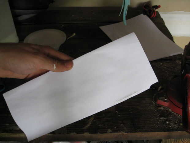 (ver figura 1), ahora poco más de pegamento se aplican a él y enróllelo alrededor de la parte inferior de la hoja para que la mitad del papel doblado no está realmente en la hoja (ver figura 2). Cuando ha envuelto alrededor de la hoja de aplanar la parte que no va en la hoja (ver figura 3).