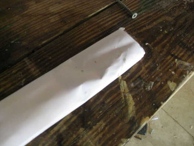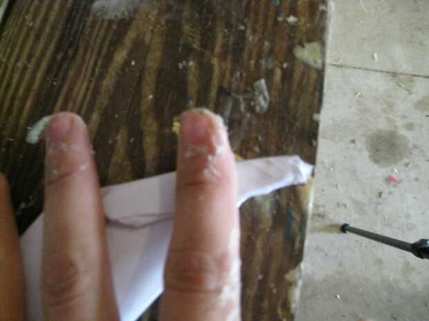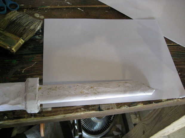 Dobla el papel sobre la daga una vez (véase cuadro 2) y aplique el pegamento a la parte del papel que va sobre la daga y doblar sobre el pegado parte (ver figura 3). Ahora usted debería tener una especie de una manga va sobre la hoja (ver figura 5) Asegúrese de que puede mover fácilmente el "manga" de la hoja. Poner el pronto se funda en la hoja y seguir aplicando pegamento al papel y envolver el pegamento cubierto papel alrededor de la vaina hasta que haya alcanzado el grosor deseado para su envoltura.