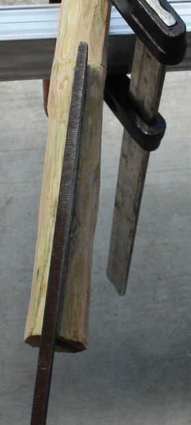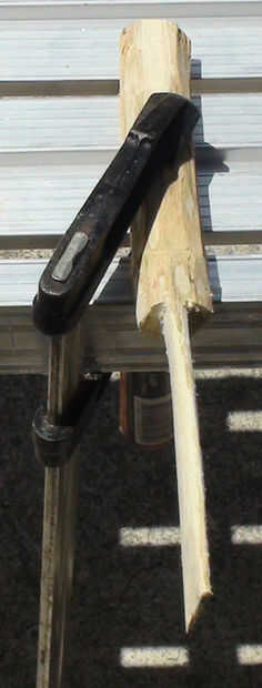 Para hacer esto usted tendrá que sujete el extremo del mango de la navaja en el Banco como se muestra.