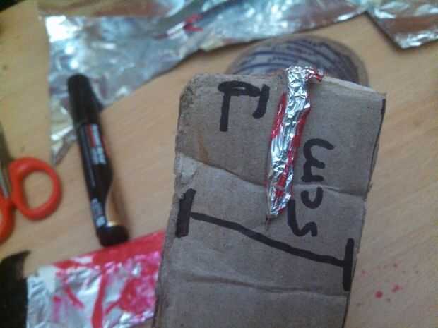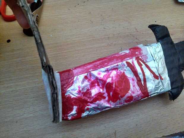 este es un puñal de papel bastante simple, y es muy fuerte para el papel. Se hace fuera de papel y pegamento (hay no palitos, no metal y no refuerzos extras de ningún tipo además de papel y pegamento). El método que utiliza es lo que la hace tan duro