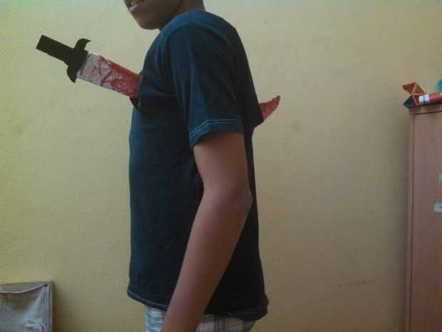 este es un puñal de papel bastante simple, y es muy fuerte para el papel. Se hace fuera de papel y pegamento (hay no palitos, no metal y no refuerzos extras de ningún tipo además de papel y pegamento). El método que utiliza es lo que la hace tan duro