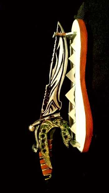 Quería probar a molde y un apoyo. Para mi primer casting decidí probar también fundición fría que utiliza polvo de metal para lograr un acabado de metal genuino. La daga es relativamente barato, el bastidor es donde el proyecto es caro.Lo guiará a tr