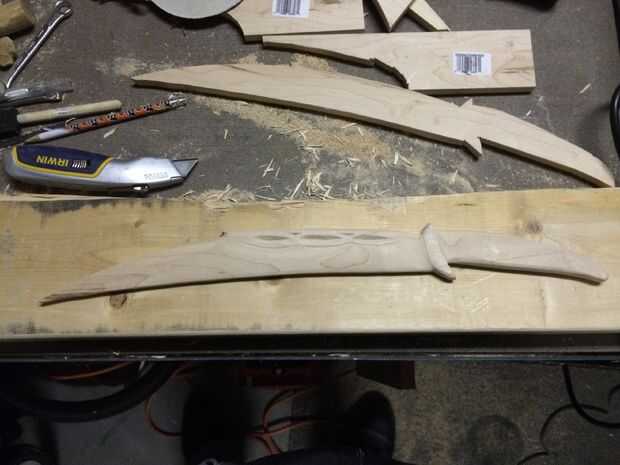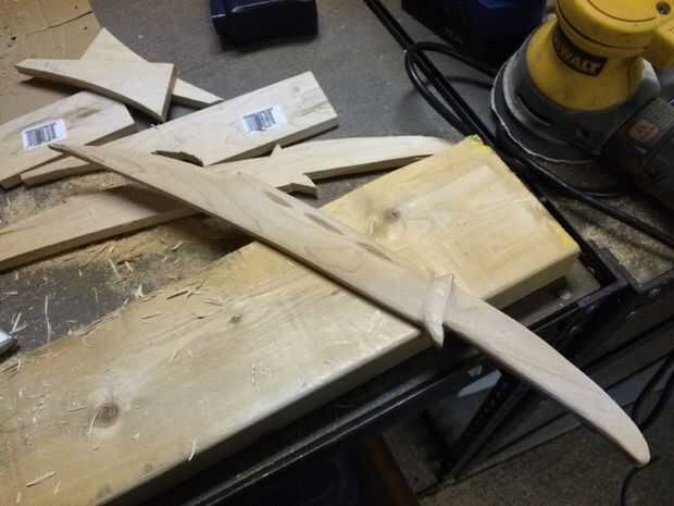 A continuación, usé una lijadora orbital para moldear las piezas de madera. A partir de la manija, comenzó a redondear las esquinas. Entonces, trasladarse a la zona de la hoja, comenzó a la hoja hacia la parte inferior de la forma cónica. Incluso antes del borde inferior agudo, el cuadrado de fondo edge dio la apariencia de la agudeza. Ya que mi hija se lleva éstos, la aparición de nitidez es todo lo que necesitaba, y añade el agregado grueso a la robustez de la hoja.