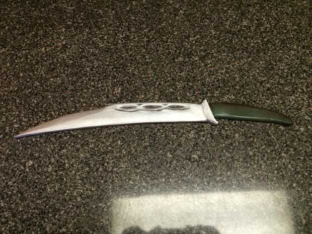 Una vez que estaba satisfecho con la configuración y detalles, procedí a pintar las dagas con pintura en aerosol. En primer lugar, usé un bosque verde para pintar rápidamente las manijas. Una vez aquellos fueron cubiertos, levemente niebla algunos bronce en áreas de las asas, así darle algún detalle.