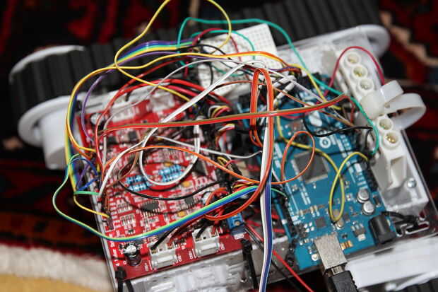 Primero conectar los cables de motor y codificador para el conductor del motor rover 5 Junta. He incluido una imagen de cómo yo por cable pero no muestra cómo conectar los cables de motor y codificador. A estas trazas del alambre hacia el motor y luego conecte el puerto correcto. Para el codificador cables que tengo les enchufe en la fila inferior de la etiqueta de pernos "INT ENC1 ENC2". De izquierda a derecha es rojo - amarillo - blanco - negro.