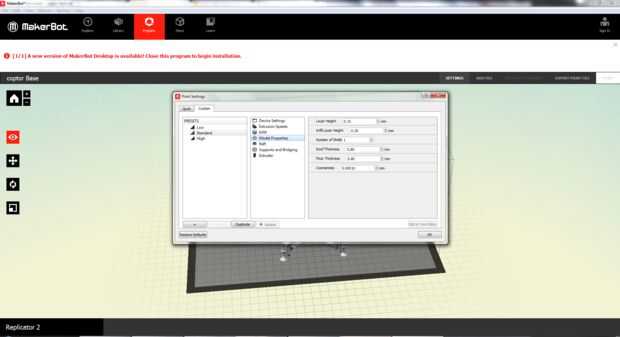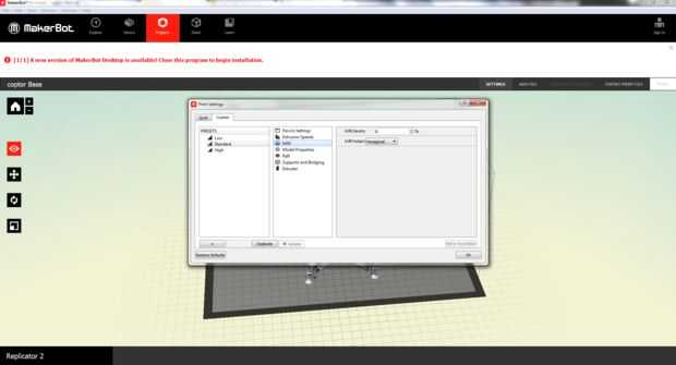 La configuración de la impresión que usted debe poner en la impresora 3D es que necesita un relleno de 10 por ciento y 1 shell. Los otros valores se muestran en las imágenes de arriba.