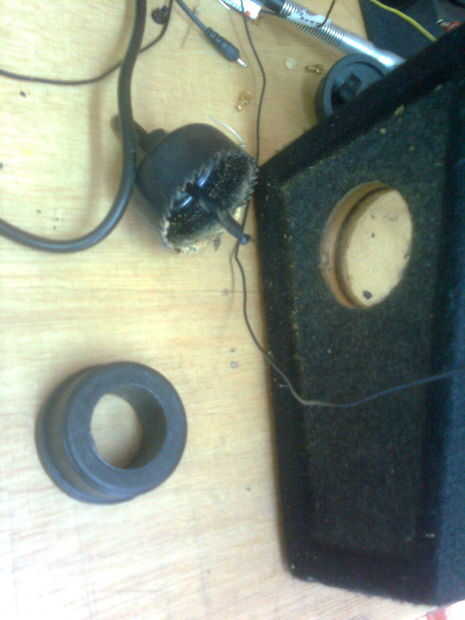 Ahora vamos a utilizar un cable de conector de pc lo pongo a conectar la electricidad de las dos cajas, primero que hacemos un agradable largo cable en caso de que queremos mover los altavoces dondequiera en o fuera del coche, nos suelde los cables ponemos juntos.