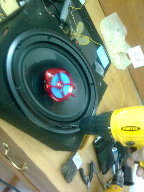 Ponemos los tornillos y todo otra vez en las cajas de los altavoces, todo.