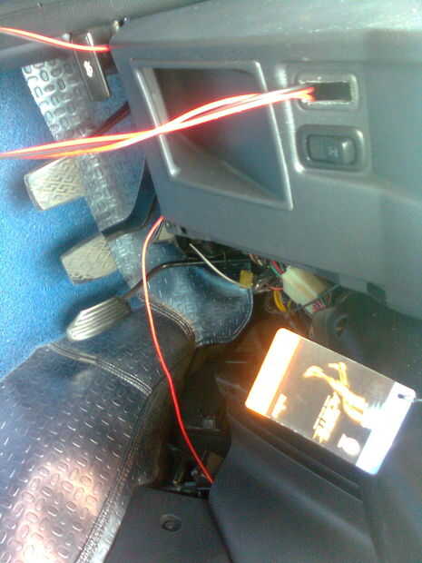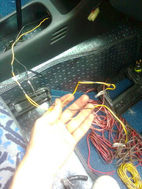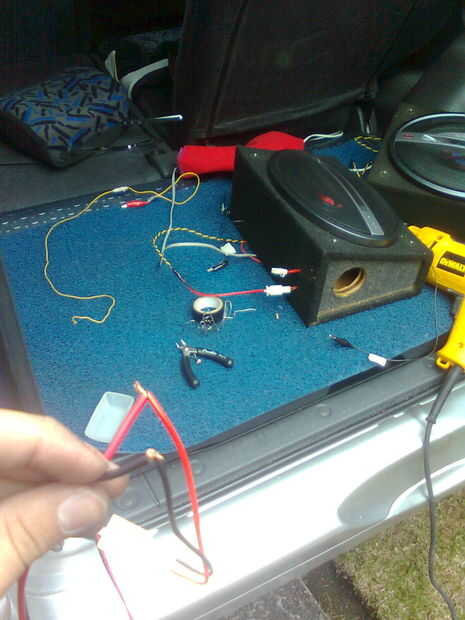 Escondemos los cables para que pueden ir a la parte de atrás del coche de la caja del altavoz, atado a lo cables o no caen, nos conectan con las principales potencias.