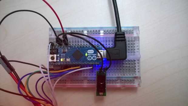 Display.A connect to Arduino.2 Display.B connect to Arduino.3 Display.C connect to Arduino.4 Display.D connect to Arduino.5 Display.OE connect to Arduino.6 Display.STB connect to Arduino.10 Display.R1 connect to Arduino.MOSI(11) Display.CLK connect to Arduino.SCK(13) Display.GND connect to Arduino.GND Sensor.OUT connect to Arduino.12 Sensor.VIN connect to Arduino.5V Sensor.GND connect to Arduino.GND