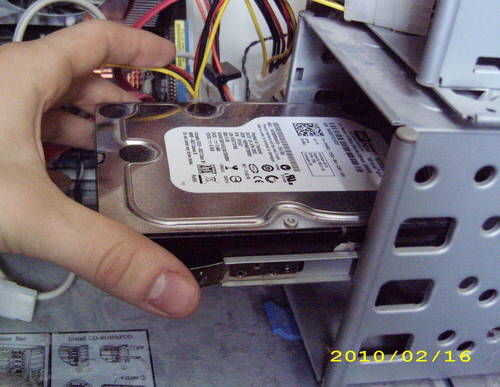 a) tornillos--una vez más, hay una elección entre tornillos y clips especiales. Dependiendo de tu caso, puede haber agujeros en la bahía para disco duro. Simplemente deslice el disco duro hasta que la línea de agujeros de tornillos con los agujeros en la Bahía e inserte los tornillos.
