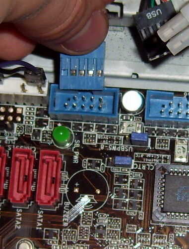 4. enchufe USB puertos en zócalo del USB de placa base (será marcado)--3ª y 4ª foto.