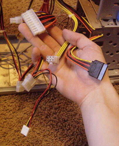 Hay muchos extremos enchufe diferentes que están conectados a la fuente de alimentación. Una breve descripción de ellos está por debajo en la cuarta foto, y el resto se puede ver aquí.