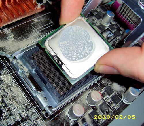 a) suavemente Coloque el procesador en su enchufe, teniendo cuidado de no para doblar las patas en el conector.