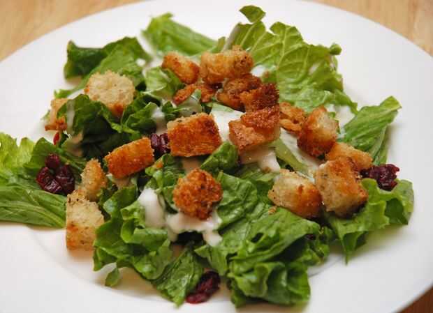 Coge algunos lechuga (o sus favoritos verdes), algún aderezo el refrescado abajo picatostes y tiene usted mismo una ensalada.