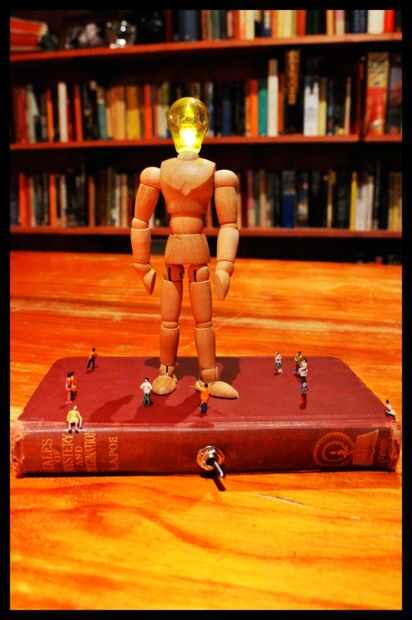 También estoy de dos mentes sobre el interruptor en la parte exterior del libro. Inicialmente iba a tener el interruptor dentro del libro pero que habría significado abrir y cerrar el libro cada vez que quería encender. El libro que elegí era muy viejo y la cubierta estaba a punto de salir y no creo que habría durado mucho tiempo con ese abrir y cerrar. También, agregar el interruptor en el exterior invita a las personas a venir y ver lo que hace.