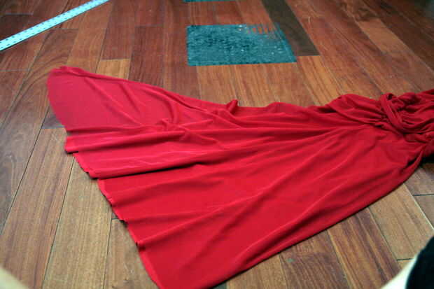 Vestido de fucsia de Dama de honorFucsia sin espalda envuelta Vestido de Dama de honor. Absolutamente fácil de hacer y se ve increíble!Material: 1.5 metros (45 pulgadas de ancho) recomendó utilizar a la tela bien envuelto en color sólido.Paso 1:Este