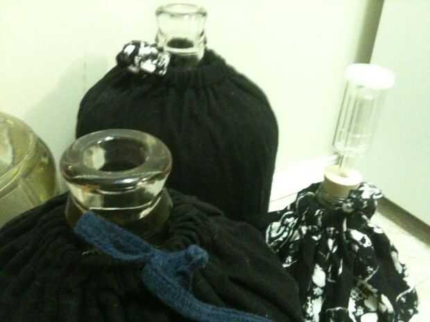 Mucha gente solucionar este problema envolviendo sus bombonas con una toalla pero he encontrado que constantemente estábamos acabando de toallas sólo para encontrarlos envuelto alrededor de las bombonas. Esto no era una solución ideal, así que tomó el asunto en mis propias manos e hizo un viaje a la Fabricland. El resultado fue estas coberturas de Damajuana, que son económicos, fáciles de preparar y mucho más guapo que una toalla.