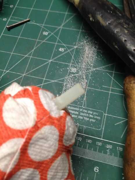 Hay un émbolo cuadrado y base que se presiona en el conector plástico de la fregona. Con un par de cortadores puede recortar pedacitos lejos de plástico para ayudar a eliminar el émbolo.