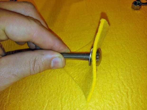 -e) lugar 1 arandela de acero inoxidable y tornillo de 1-5/16" acero inoxidable perno lo mas ajustado posible