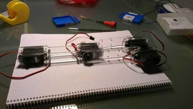 aquí es un pequeño proyecto de prueba de concepto que hice. La idea es tener un robot que es capaz de imitar los movimientos del usuario.Por ahora el robot y el control sólo consisten en el brazo. El brazo y los controles se construyen utilizando Leg