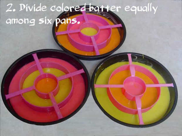 Un método simplificado de hacer un pastel de arco iris con tan sólo dos latas para hornear.Fondo:Tontamente intenté hacer un pastel de capas de arco iris para la 7 º fiesta de cumpleaños de mi hija recientemente.Resultó OK (ver segunda imagen). Fue u
