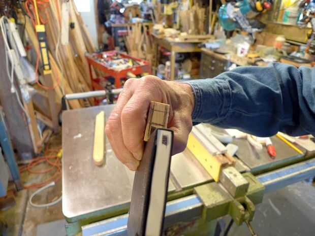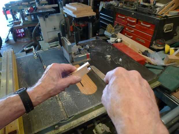 Uso una plantilla espigada para la tabla VI. Observe la posición de las acciones de arce. Comenzar desde el centro de la culata móvil hacia el exterior y la acción alrededor de los bancos para que cada lado consigue cortar simétricamente. Parar justo dentro de las líneas de transferencia y las pruebas en una Moleskine. Ajustar cortes hasta clip caben perfectamente en la piel de Topo (la segunda foto es del prototipo de pino, que tendrá un largo arce con la ranura en el extremo del palillo). Cortar a una longitud de 7/8" a 1".