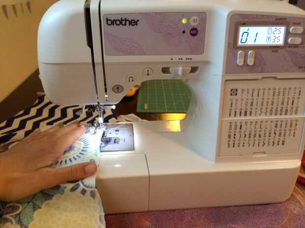 2. en la máquina de coser coser la conexión posterior de cada plaza a uno con el otro. Deje un espacio de 1/4" entre los bordes de los cuadrados.