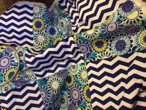 1. Coloque a la tela de tres capas en su máquina de coser. Eligió un patrón y el hilo y continúe conectar sus plazas no conductoras para el respaldo con la máquina.