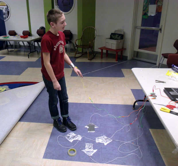 La biblioteca pública de Dover fue anfitrión de noche de construir un Instructables con kits de Makey Makey. Nuestros clientes fueron invitados a experimentar con los kits para convertir objetos cotidianos en controladores, teclados o instrumentos musicales. En este Instructable le mostrará cómo crear su propio controlador de pad de piso Makey Makey para Dance Dance Revolution.