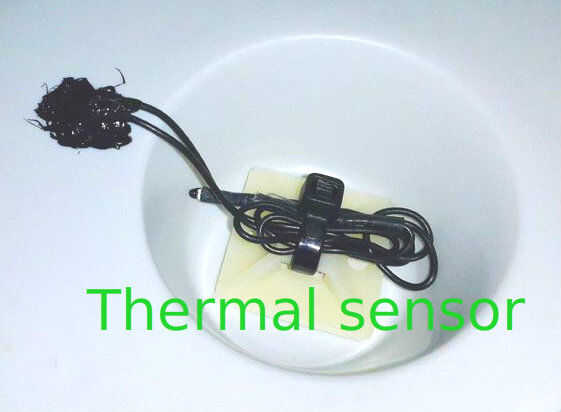 Con una plaza de palo y una sujeción de cable, até el sensor térmico en la parte inferior de la tapa.