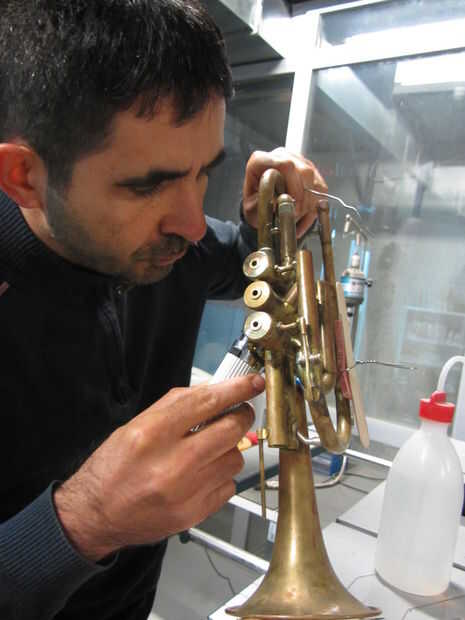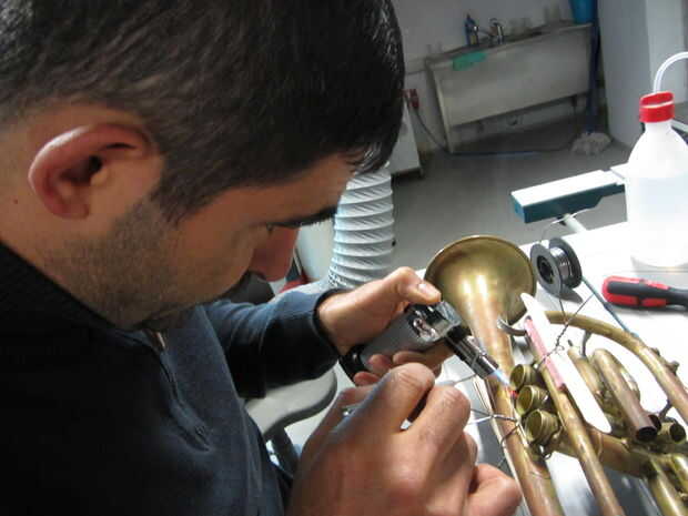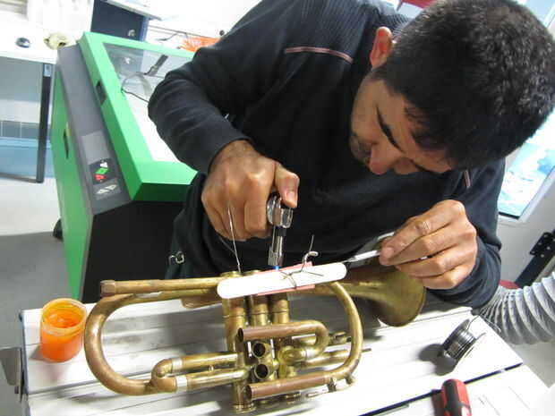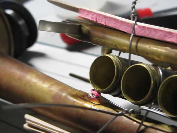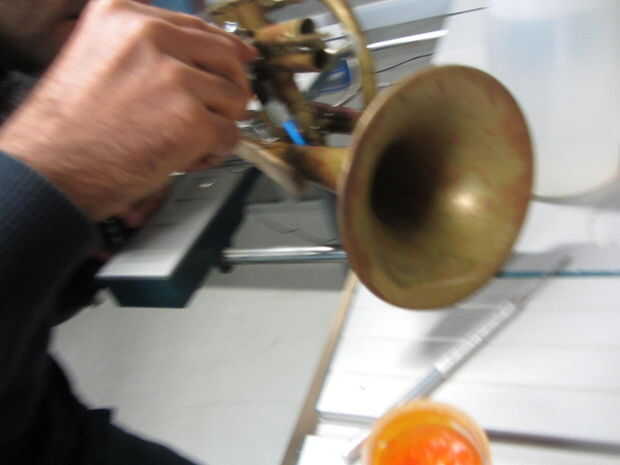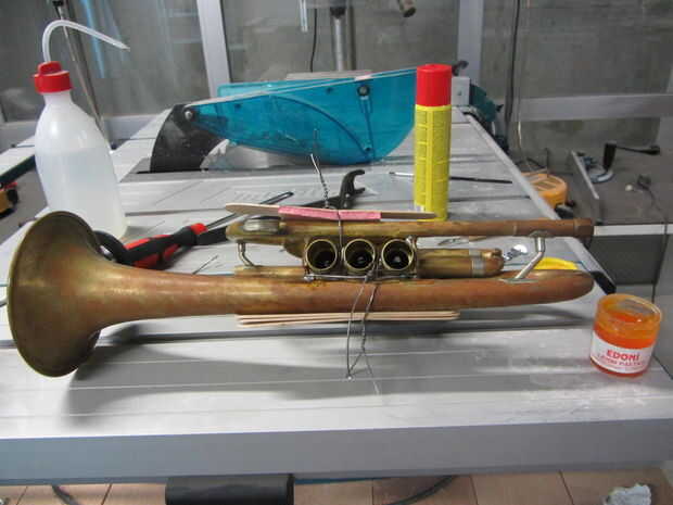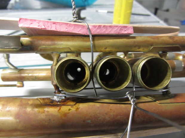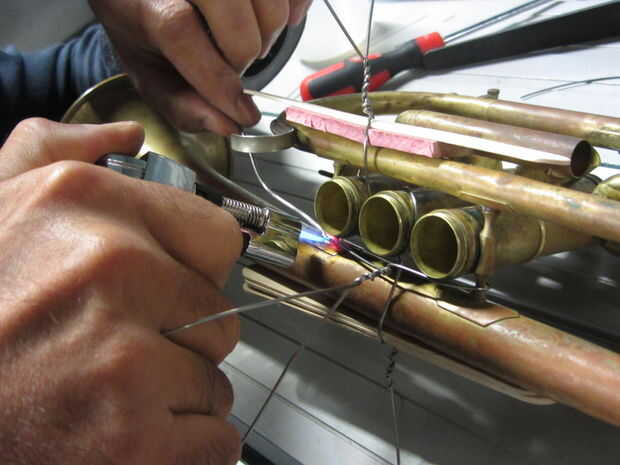 8-no no dude en calentar el instrumento, ya que no es posible hacer la soldadura sin las superficies alcanzando la temperatura necesaria. Pero no exagero, algunas otras piezas soldadas del instrumento pueden aflojarse o puede quemar la capa de laca. Tenga cuidado y el calor sólo donde es necesario calor.