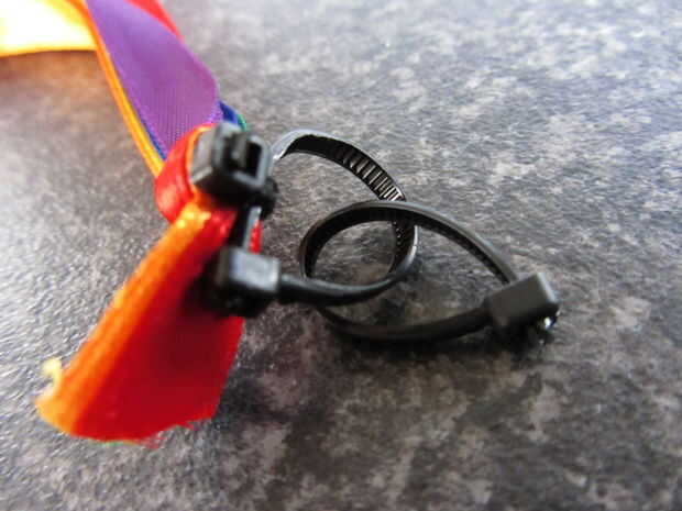 Podrían usar anillos de metal para los bucles de segundo y terceros si usted tiene acceso a ellos, pero las ataduras de cables funcionan bien.