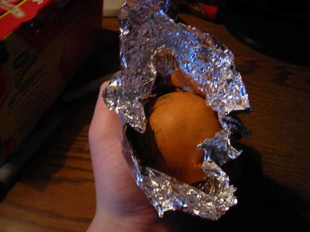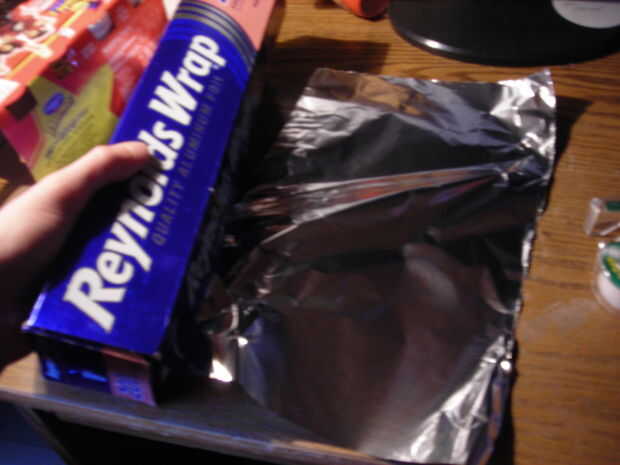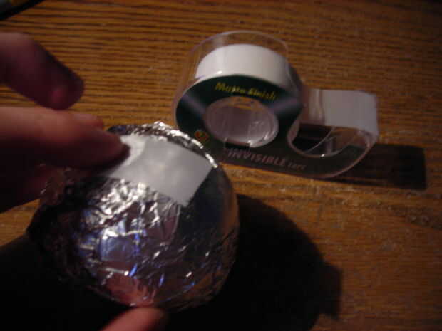 Envolver la bola con papel de aluminio, luego añadir la cinta a la aleta, asegurándolo firmemente.